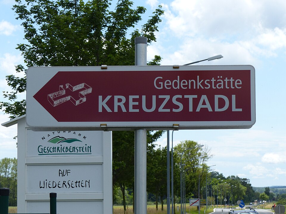 Deutsch: Wegweiser zur Gedenkstätte Kreuzstadl Rechnitz