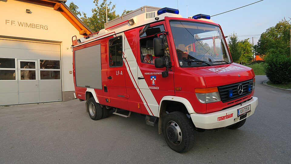 Deutsch: Das Löschfahrzeug der Feuerwehr Nußbach. Standort ist im Feuerwehrhaus Wimberg. Baujahr 2006.
