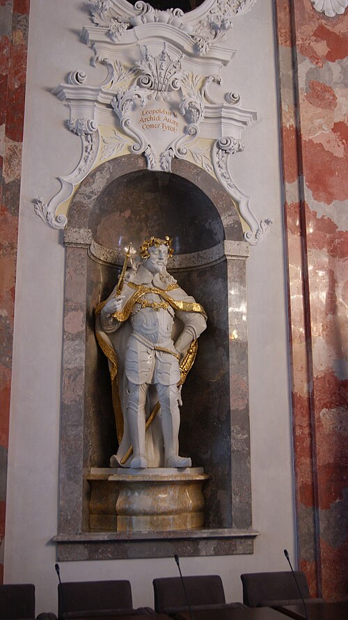 Deutsch: Alter Tiroler Landtagssaal in Innsbruck. Statue Leopold V.