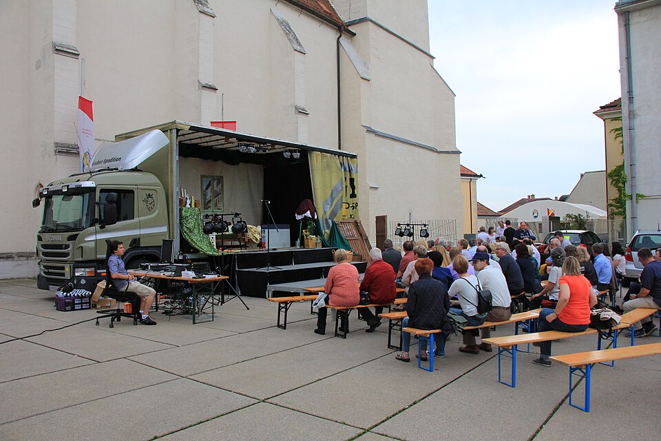 Deutsch: Lastkrafttheater vor der Vorstellung am Domplatz in Eisenstadt |