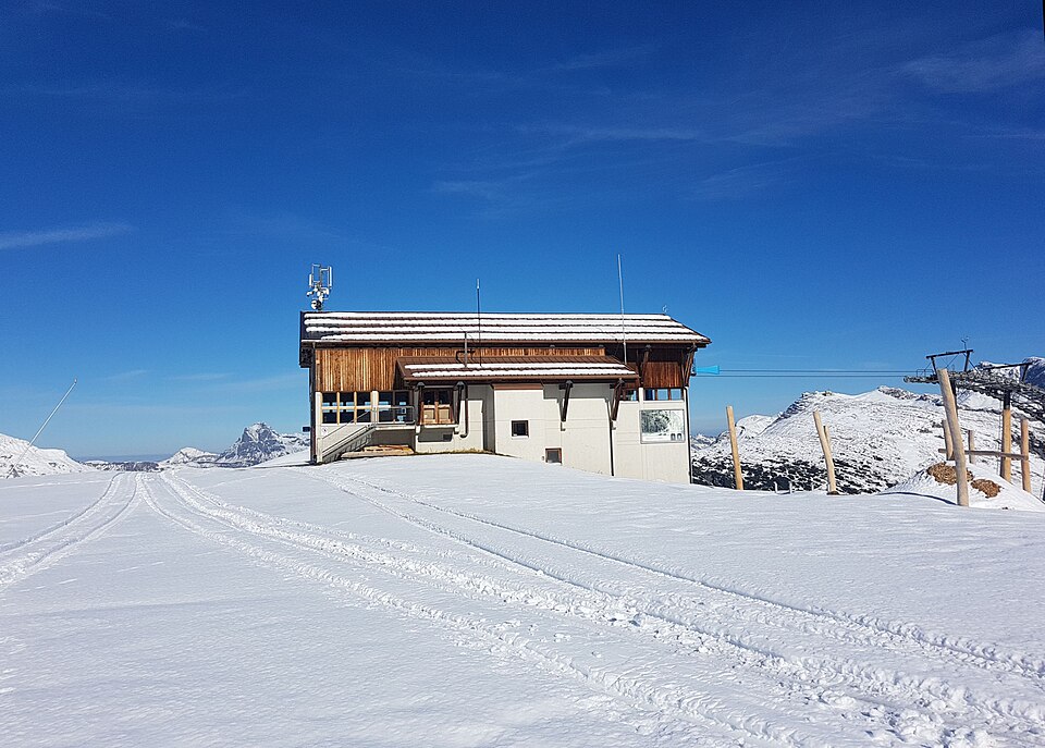 English: Mountain station of the Seekopfbahn, a 4-seater chairlift in the Zürs district in the municipality of Lech in Vorarlberg, Austria.