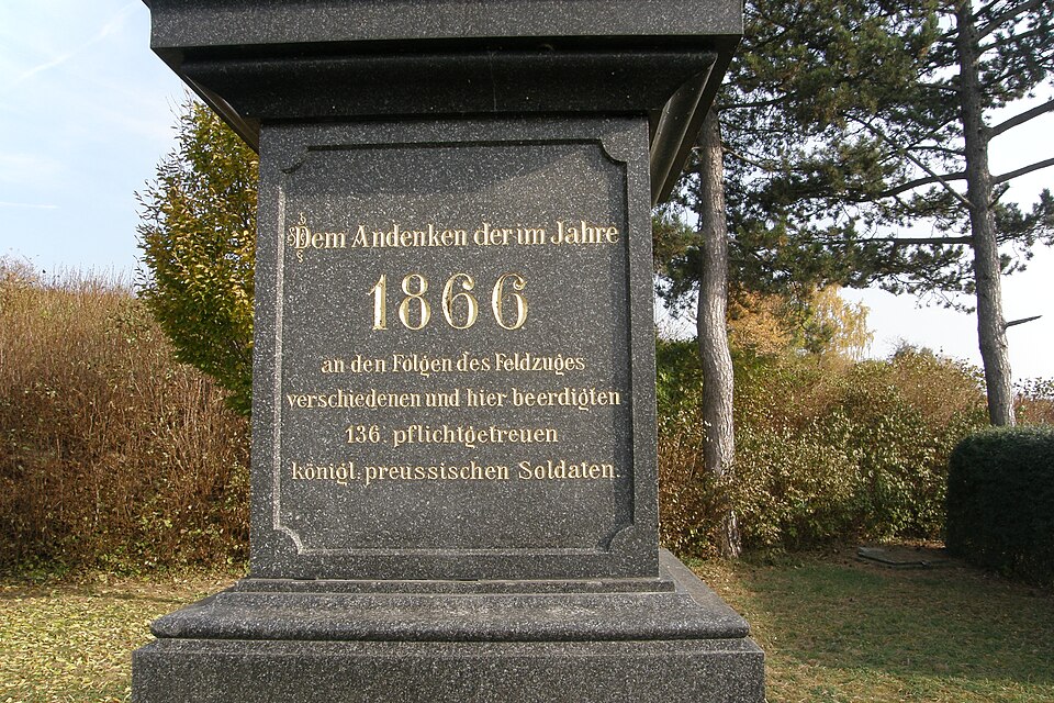 Deutsch: Das preussendenkmal in Poysdorf - Das Denkmal in Poysdorf für 136 Preussen die in Poysdorf an Cholera verstarben und am weissen Berg begraben wurden.