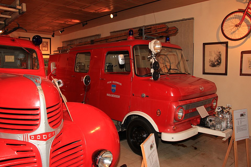Deutsch: Opel Blitz 300-6 mit Aufbau eines Leichten Löschfahrzeuges der FF Maria Enzersdorf Baujahr 1967 im Museum der FF, links DOdge Canada |