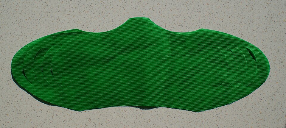 English: Very simple breathing mask (Respirator) made of paper for mouth and nose. Seen in Austria, Vorarlberg, Dornbirn. This is to protect other people from infection by COVID-19 viruses in Austria (?)