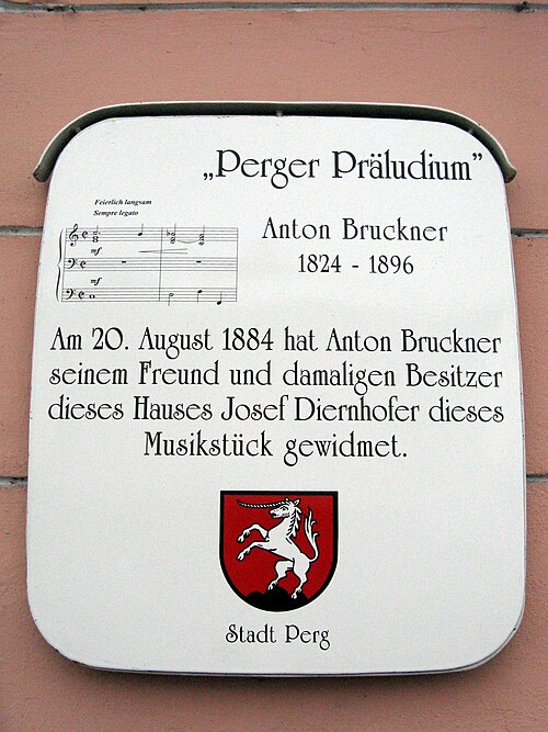 {{Information |Description={{de|1=Gedenktafel "Perger Präludium von Anton Bruckner" auf dem Haus Herrenstraße 26 in Perg}} |Source=Eigenes Werk (own work) |Author=Pfeifferfranz |Date=2009-02-14 |Permission= |other_versions= }} <!