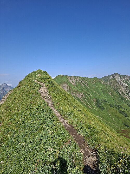Français : Höfergrat, un sentier de randonnée dans les municipalités de Warth et Schroecken (Vorarlberg, Autriche) au Hoeferspitze (montagne) |