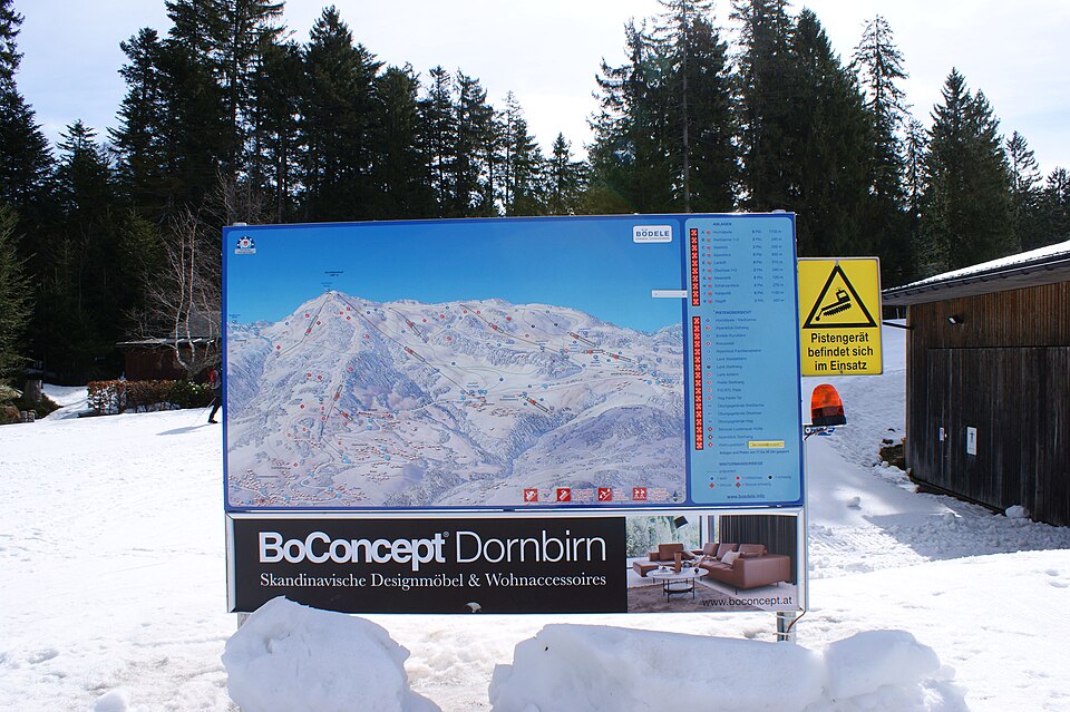 Français : Pistes de ski - signes de ski /panneau d'avertissement / panneau d'information dans la station de ski de Boedele-Hochaelpele-Schwarzenberg à Vorarlberg, Autriche. |