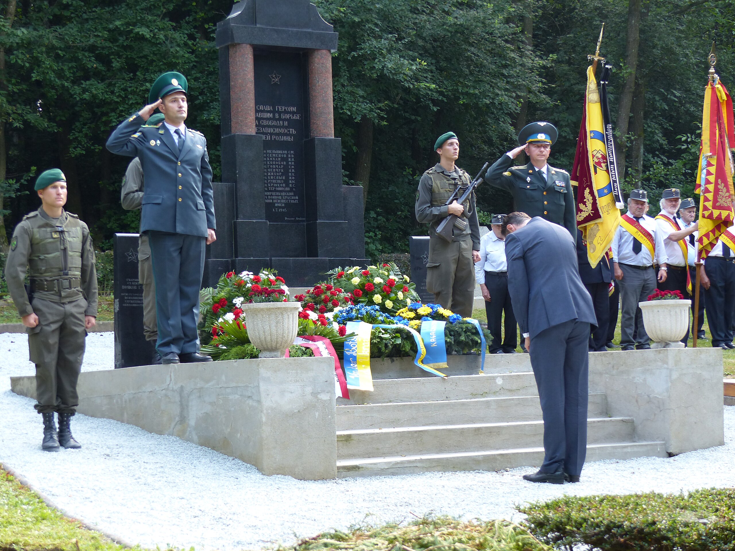 Deutsch: Begräbnis sowjetischer Soldaten 24. Juni 2016 - Kranzniederlegung durch den ukrainischen Botschafter Olexander Scherba
