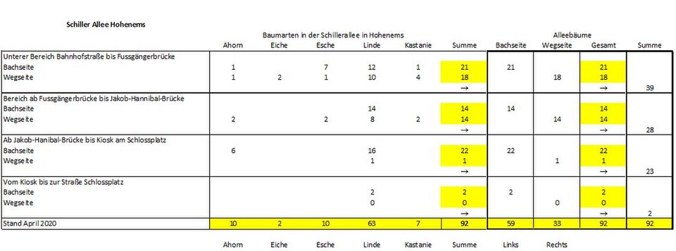 English: Natural monument "Schillerallee" in Hohenems, Vorarlberg, Austria. Statistics on the population of trees in the Schillerallee at Hohenems. As of April 23, 2020.