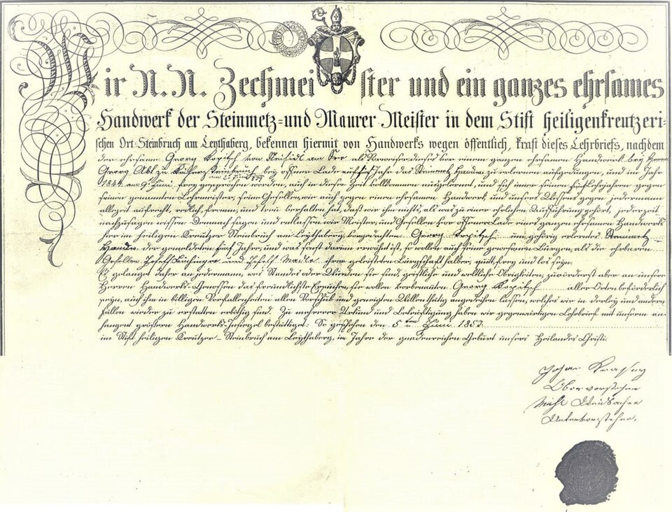 Datei:Steinmetz-Gesellenbrief 1844 Kaisersteinbruch.jpg