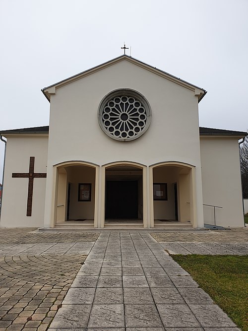 Deutsch: Dieses Bild zeigt den Haupteingang der Pfarrkirche der Gemeinde Stoob.