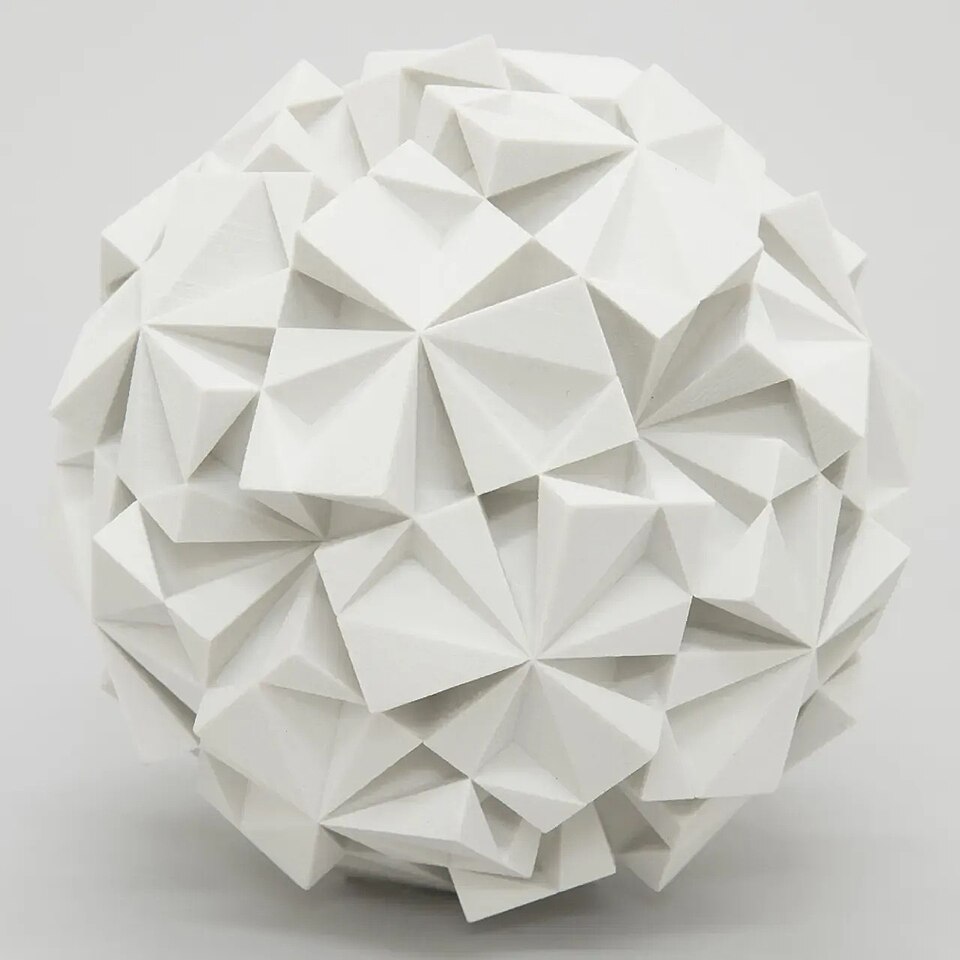 English: Following the research of Buckminster Fuller´s Quanta Modules, Einar Thorstein developed the SuperCube. The SuperCubeSphere explores a further development of extending this system into complex polyhedral space. |
