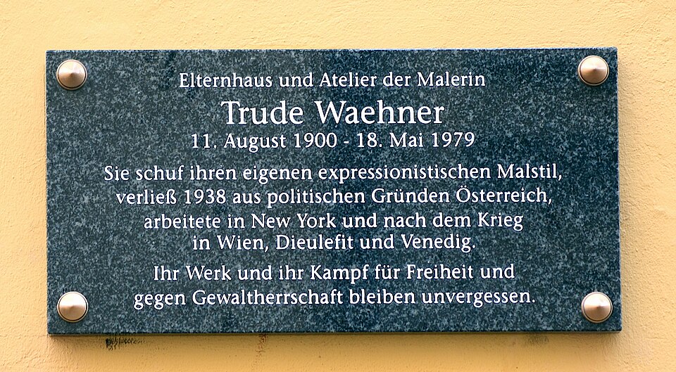 Deutsch: Gedenktafel für Trude Waehner in Wien-Josefstadt am Haus Buchfeldgasse 6