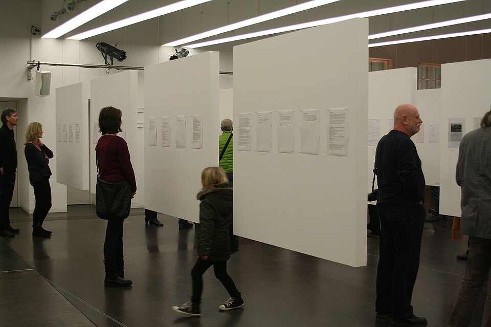 Datei:Vernissage der Ausstellung "klein.kariert.gelocht".JPG