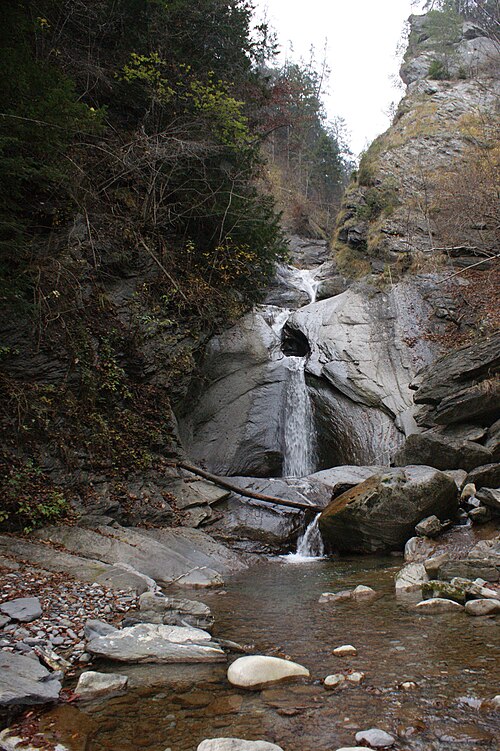 Français : Cascade de Ratzbach dans la municipalité de Weiler, Vorarlberg, Autriche. Le Ratzbach traverse la gorge de "Kessel" et la cascade de Ratzbach. |