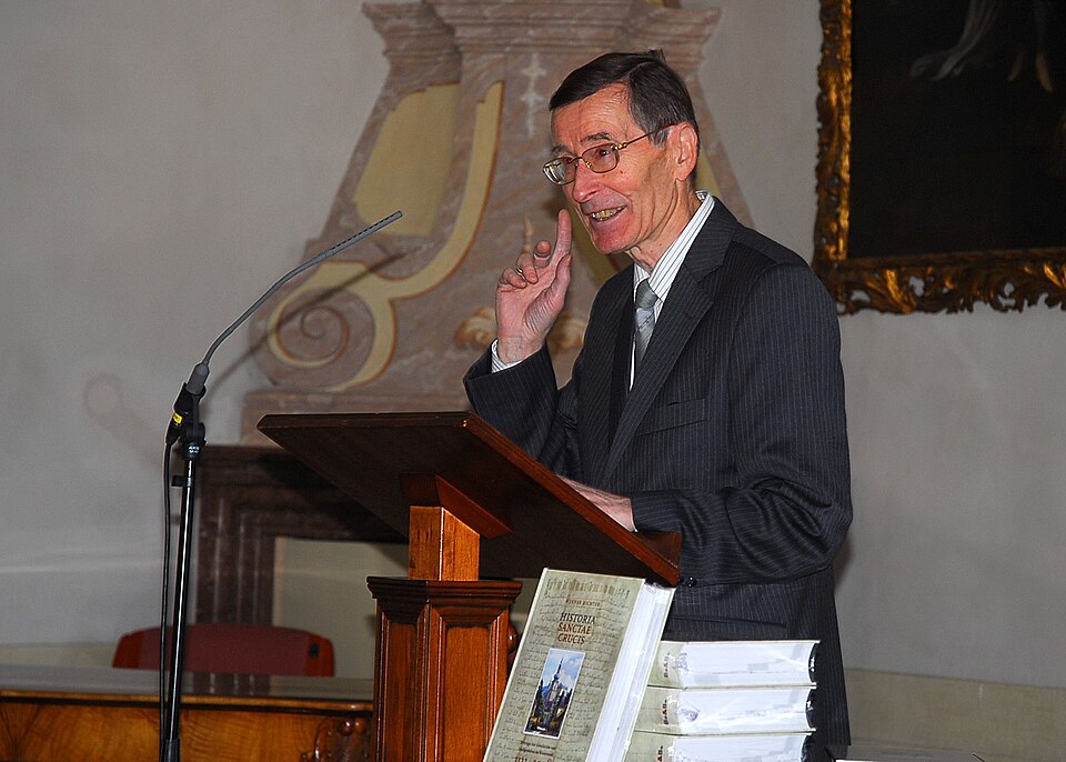 Deutsch: Prof. Werner Richter bei seiner Buchpräsentation "Historia Sanctae Crucis" im Stift Heiligenkreuz |