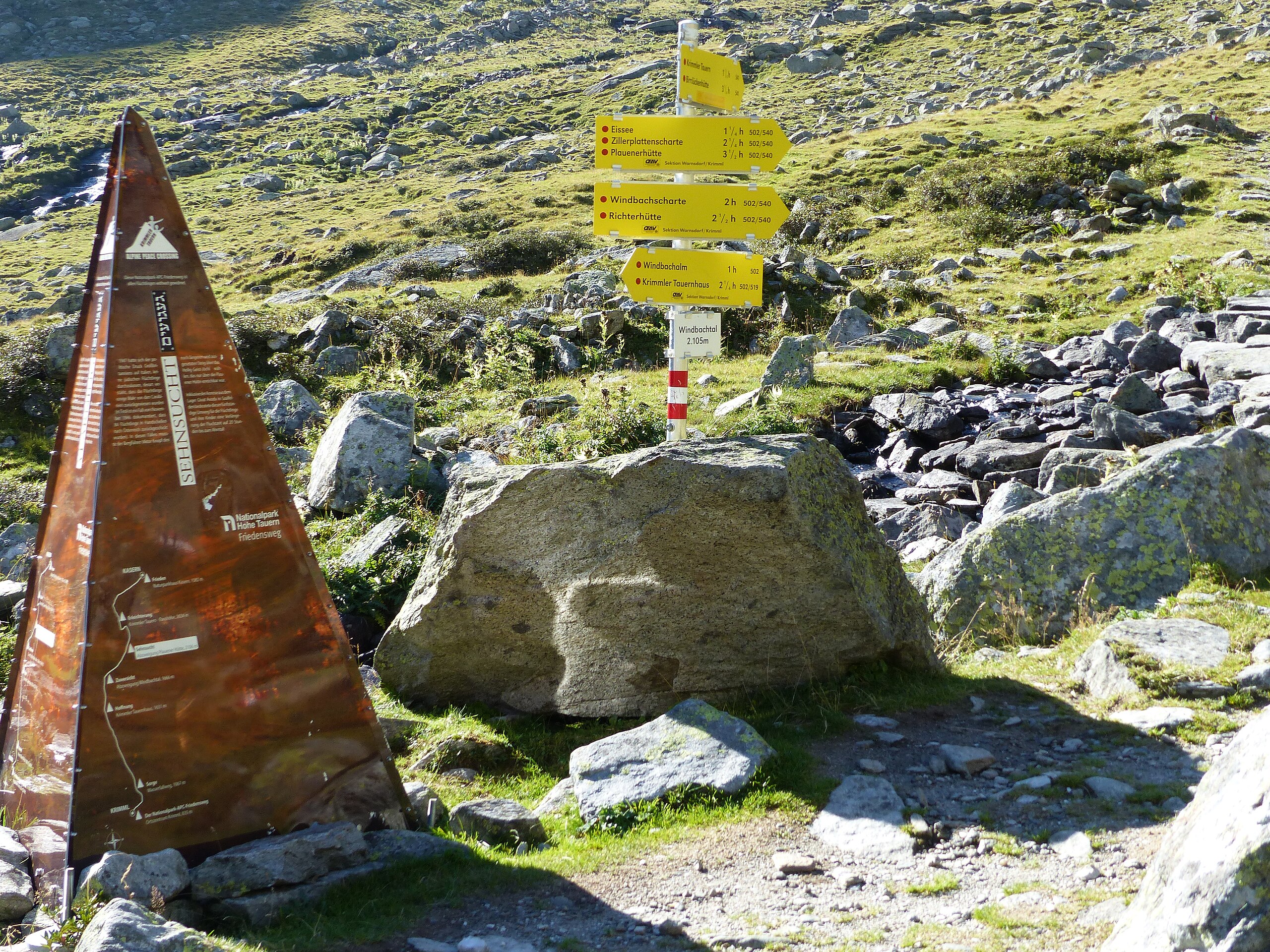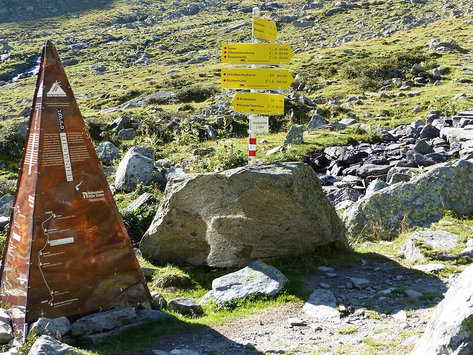 {{Information |Description ={{de|1=Abzweig im oberen Windbachtal zum Eissee und Krimmler Tauern. Hinweis auf den Friedensweg (Alpine Peace Crossing).}} |Source ={{own}} |Author =Whgler |Date =2017-08-29 |Per...