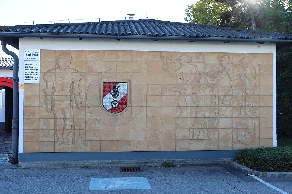 Deutsch: Mosaik von Karl Heigl an der alten Feuerwehrremise in Wiener Neudorf |
