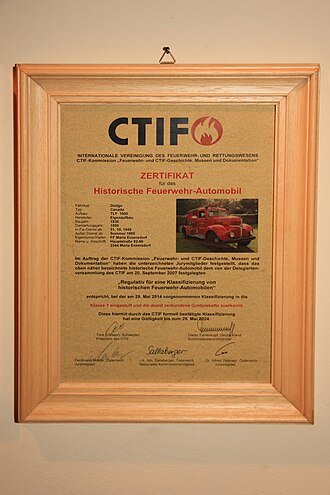 - Nr. 29 in In Österreich nach dem Regulativ des CTIF klassifizierteHistorische Feuerwehrautomobile