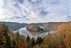 Die Donau weist eine Gesamtlänge von 2857 Kilometern auf.[1] Davon verlaufen 350 Kilometer durch Österreich.[2] Sie hat ihren Ursprung im Schwarzwald und mündet in das Schwarze Meer. Teil ihres insgesamt 817.000 Quadratkilometer großen Einzugsgebiets sind 96 Prozent des österreichischen Staatsgebiets.[3] Dort fließt sie durch die Bundesländer Oberösterreich, Niederösterreich und Oberösterreich, mit dem Inn, der Traun, der Enns und der Ybbs als ihren wichtigsten Zubringern.[2] Ihre bekannteste Schleife, die durch Wasser- und Winderosion entstandene Schlögener Schlinge, befindet sich in Oberösterreich.[4]