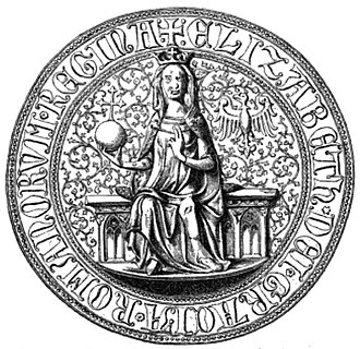 Elisabeth dürfte sich im Frühjahr und Sommer des Jahres 1314 in Wien aufgehalten haben. Am 11. Mai 1315 wurde sie vom Erzbischof Heinrich von Köln in Basel auf einem Hoftag zur römisch-deutschen Königin gekrönt.[10] In ihren letzten Lebensjahren litt Elisabeth unter einem schweren Augenleiden, das erstmals um 1326 belegt ist. In der Folge erblindete sie allmählich fast vollkommen und konnte nur mehr Hell-Dunkel-Konstraste wahrnehmen.[11]