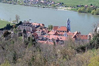 Durch seine Heirat mit Elsbeth von Kuenring gelangte Eberhard (VI.) von Wallsee in den Besitz der beiden Festen zu Spitz, beide Lehen der Herzöge von Baiern (Wittelsbacher)[A 2].[3] Nach seinem Tod verkaufte sie ihre Anteile an beiden Festen an Heidenreich von Maissau, der mit ihrer Cousine Anna von Kuenring verheiratet[2].[4] Von Verwandten aus "Linie Kuenring-Weitra" hatte Elsbeth von Kuenring den alten Kuenringerhof in Dürnstein gekauft, den sie entsprechend vergrößern ließ und auf dem sie als Witwe ihren Sitz nahm.[2]