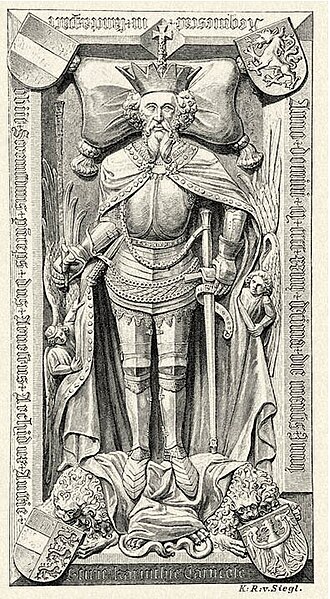 - Eine seiner belegten Maßnahmen, die er außerhalb der heutigen Republik Österreich setzte, war die Erneuerung der Stadtschule in Laibach[34], das unter seinem Sohn Friedrich (III. / V.) Bischofssitz eines neu gegründeten Bistums wurde.