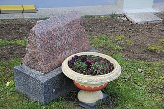 Gedenkstein an Baron Foullon de Norbeeck vor dem Feuerwehrhaus