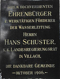 - Hans Schuster, k.k. Landesregierungsrat, Förderer der Wasserleitung(1906)[1]