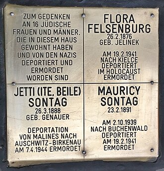 - ↑ Steine der Erinnerung: Stationen der Erinnerung im Alsergrund (abgerufen am 19. März 2018)