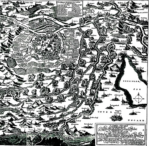 - ↑ Grundriß Der Kayserlichen Residentz-Stadt Wien, Mit der Türckischen Belagerung sambt dem Grösserentheil von Unter-Oesterreich und Der Türcken und Tartaren Verübten Verheerung 1683. Bey Johann Hoffmann, Nürnberg. (Aus Sammlung Sturminger, Wien)