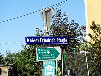 - Nach Kaiser Friedrich III. sind in Wien[11], Wiener Neustadt, Krems, Linz und Grein Gassen und Straßen benannt.