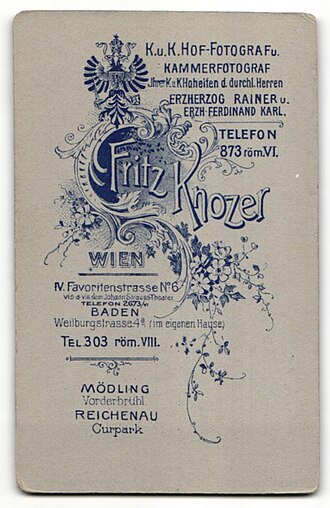 - ↑ 4,0 4,1 Achtzig Jahre Atelier Knozer.: Allgemeine photographische Zeitung, Jahrgang 1937, S. 42 f. (online bei ANNO).