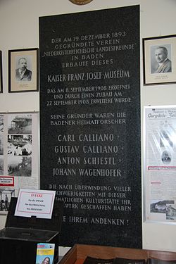 - ↑ Gustav Calliano in der Verstorbenensuche am Stadtpfarrfriedhof Baden-St. Stephan (Grab Nr.01/01/55)