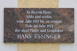 Sein als Essinger-Haus bezeichnete Gebäude in Mödling, wo dem er ab 1913 wohnte, ging durch eine Schenkung in das Eigentum der Stadt Mödling über.[1] Seit dem Jahr 2016 sind auch sein künstlerisches Erbe ausgestellt, sowie der Essinger Art Club, der Ausstellungen und Events organisiert, untergebracht.