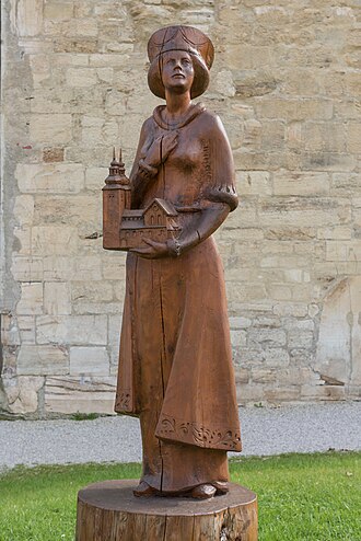 - Klagenfurt: Am Nordeingang in den Dom befindet sich eine steinerne Statue der Heiligen Hemma