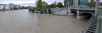 - ↑ Wienfluss droht über Ufer zu treten.