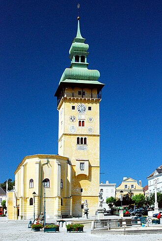 Der Rathausturm auf dem Hauptplatz
