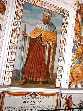 - ↑ Herzog Heinrich von Kärnten, Graf von Tirol, der Jahre zuvor mit Johanns Vater um die böhmische Krone rivalisiert hatte, war in erster Ehe mit Anna Přemyslovna, einer älteren Schwester von Johann Heinrichs Mutter verheiratet gewesen.