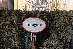 Am 1. Oktober 1866, dem Jahr der Schlacht bei Königgrätz zwischen dem Kaisertum Österreich und dem Königreich Preußen, verstarb Trost im Alter von 78 Jahren und wurde auf dem Badener Stadtpfarrfriedhof zur letzten Ruhe bestattet[3]. Sein Bildnis, nach einer Lithografie von Franz Eybl von 1852, gemalt 1867 von Franz Xaver Layr, hängt im Sitzungssaal des Badener Rathauses. Die Trostgasse in Baden wurde nach ihm benannt.
