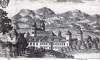 Ein weiterer wichtiger Sitz des Ordens befand sich zunächst auch in Wiener Neustadt.[3] Ein Versuch von Kaiser Friedrich 1479 das Bistum Wiener Neustadt, das Stift der weltlichen Chorherren und den St. Georgs-Ritterorden unter dessen Hochmeister miteinander zu vereinigen, um seinen Ritterorden so auf eine wirtschaftlich bessere Basis stellen zu können, scheiterte allerdings letztlich am Widerstand von Peter Engelbrecht, dem damaligen Bischof von Wiener Neustadt.[4]