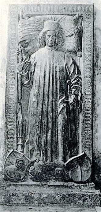- Nach seinem Tod wurde Johann Siebenhirter in der nach ihm benannten "Siebenhirterkapelle" der Stiftskirche des Stiftes Millstatt (heute die Pfarrkirche in Millstatt) beigesetzt, wo seine Grabplatte, ein Werk des Augsburger Bildhauers Hans Peuerlin, erhalten ist.[5] Diese um 1500 geschaffene Grabplatte ist insofern bemerkenswert, weil für sie "Mandelscheck", eine seltene und daher äußerst wertvolle Variante des Adneter Marmors, verwendet wurde. Der Abbau des "Mandelschecks" ist nur für wenige Jahrzehnte vor und nach 1500 belegt, er war gewöhnlich nur für einen ausgewählten Personenkreis verfügbar, nämlich für Kaiser und Könige.[1]