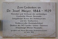 Josef Mayer (11. Oktober 1844 in Ploscha in Böhmen; † 18. Februar 1929 in Wiener Neustadt) war Kommunalpolitiker, Lokalhistoriker und Pädagoge.