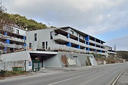 Gegen heftiger Kritik angrenzender Gemeinden[1] wurde auf dem Areal der ehemaligen Lafarge-Perlmooser Zementfabrik im Rahmen der Wiener Wohnbauinitiative ab 2011 eine neue Wohnsiedlung mit mehreren Wohngebäuden, lokaler Infrastruktur und insgesamt 450 Wohneinheiten errichtet. Die klagenden Gemeinden führten wie auch die Anrainer selbst, ein starkes Verkehrsaufkommen in der Straßeneinmündung zur Hochstraße ins Treff.[2]