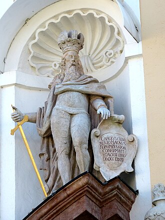 | Überregionale Aspekte dieses Themas werden auch in der Wikipedia unter dem Titel Karl der Große behandelt. Hier im ÖsterreichWiki befinden sich Informationen sowie Ergänzungen, die zusätzlich von regionaler Bedeutung sind (siehe Mitarbeit). |