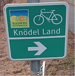 Der Name kommt daher, dass sich diese Kleinregion seit geraumer Zeit als Knödel-Land positioniert hat und Sie auf Wunsch in allen Hauptorten ein reichhaltiges Knödelangebot serviert bekommen. Um dieses und die Region genießen zu können, ist das Fahrrad das beste Mittel der Wahl. Die Wege des Knödel-Land-Radwegs sind großteils asphaltiert, nur wenige Teilstücke (insgesamt ca. 5 km) sind geschottert, jedoch ebenfalls mit einem Tourenfahrrad sehr gut zu befahren. Es besteht auch die Möglichkeit kürzere Routen zu wählen, wobei die Westroute ca. 20 km und die Ostroute ca. 33 km lang sind – man kann überall ohne Probleme einsteigen, der Radweg ist bestens ausgeschildert und an die Radroute Thayarunde angebunden.