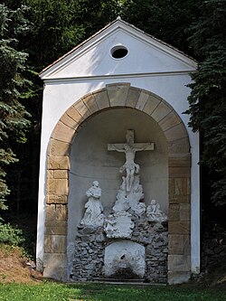 Der Mauerbacher Kreuzbrunnen befindet sich auf dem Weg zur Kartause Mauerbach.[1]