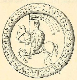 Herzog Leopold (VI.) "der Glorreiche"[A 1] (* im 12. Jahrhundert; † 28. Juli 1230, in San Germano[1]) herrschte mehr als dreißig Jahre über Teile des heutigen Landes Österreich. Er gilt als guter Politiker und Wirtschaftsmann und zählt zu den Vermittlern zwischen dem Kaiser und dem Papst und anderen Fürsten[2]. Außerdem förderte er erfolgreich den Handel (besonders den "Fernhandel") und bescherte seinen Herzogtümern eine wirtschaftliche und kulturelle Blütezeit.[3] Offensichtlich hatte er ein gutes Gespür für Möglichkeiten, seine Hausmacht zu erweitern.[4]