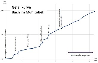 - ↑ Martinus Jacobus Johannes Bik: Zur Geomorphologie und Glazialgeologie des Frödischbach- und Mühltobeltals in Vorarlberg (Österreich), Academisch Proefschrift, Amsterdam 1960, Universität Weonsdag, S. 35. Siehe auch untenstehende Grafik über den Gefällverlauf des Bachs im Mühltobel nach diesem Werk, S. 26-27.