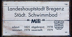 - ↑ Nostalgiebad „Mili“ – Baden wie zu Kaisers Zeiten, Webseite: vorarlberg.orf.at vom 23. Oktober 2025.
